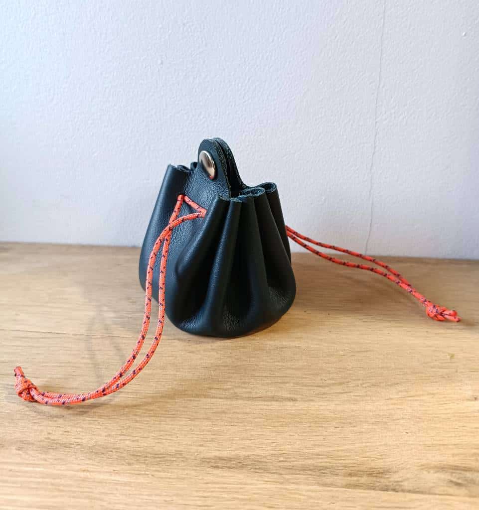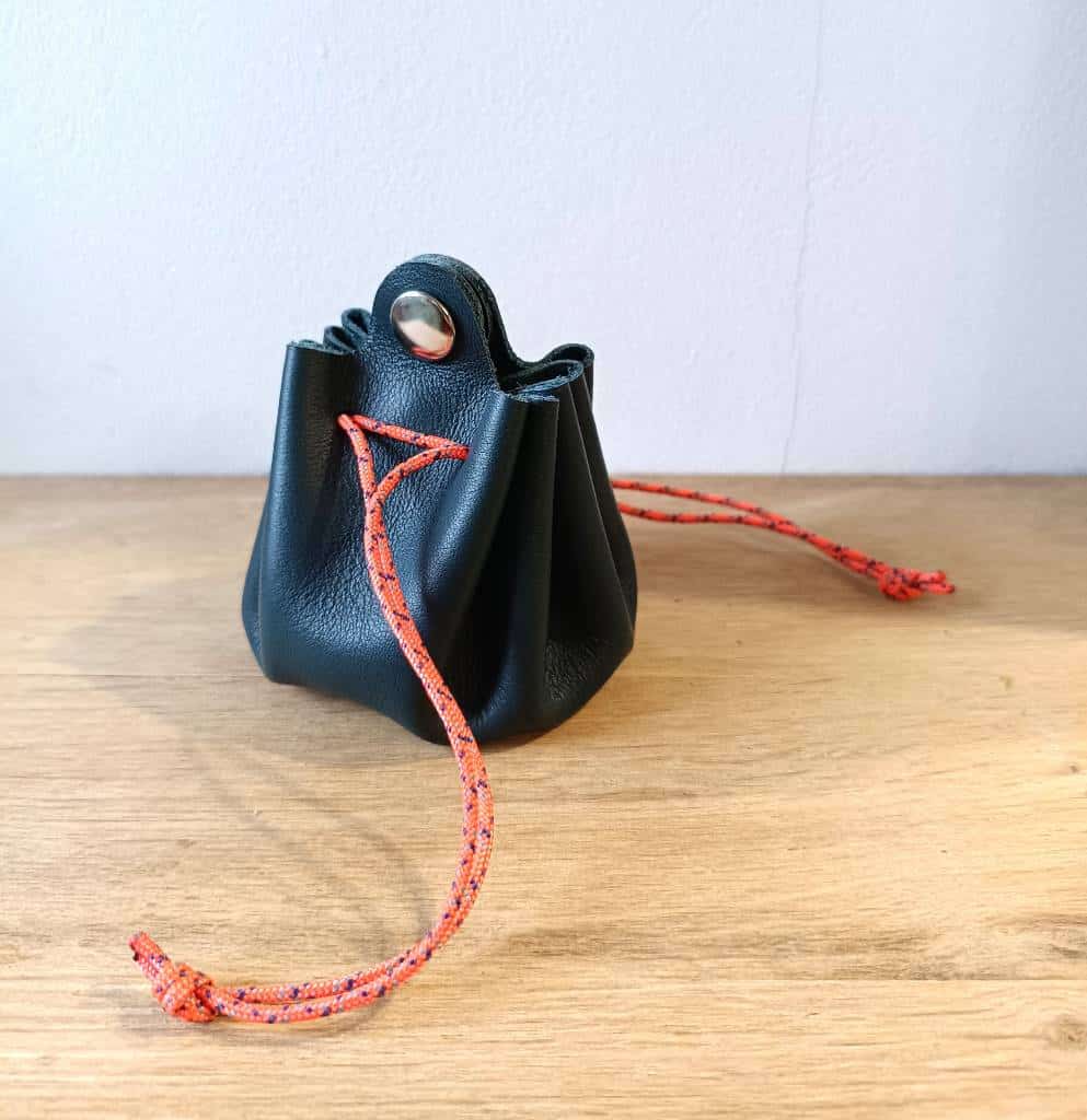 Bourse porte-monnaie en cuir bleu canard et cordelette orange