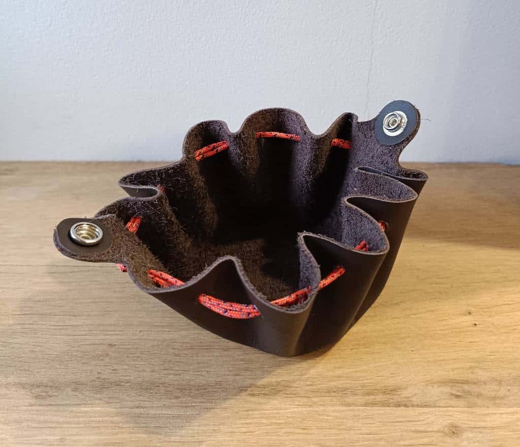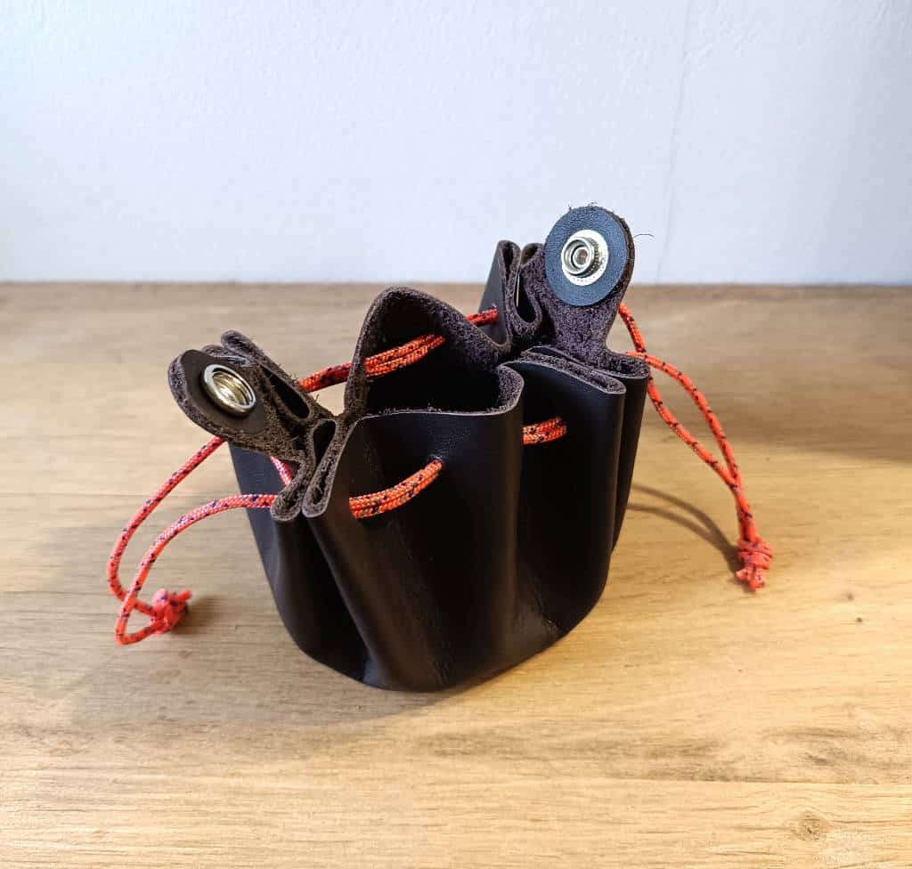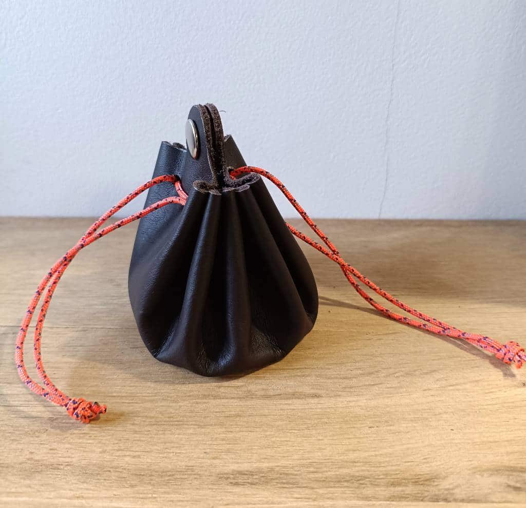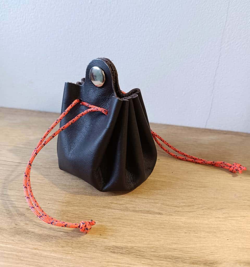 Bourse porte-monnaie en cuir marron et cordelette orange
