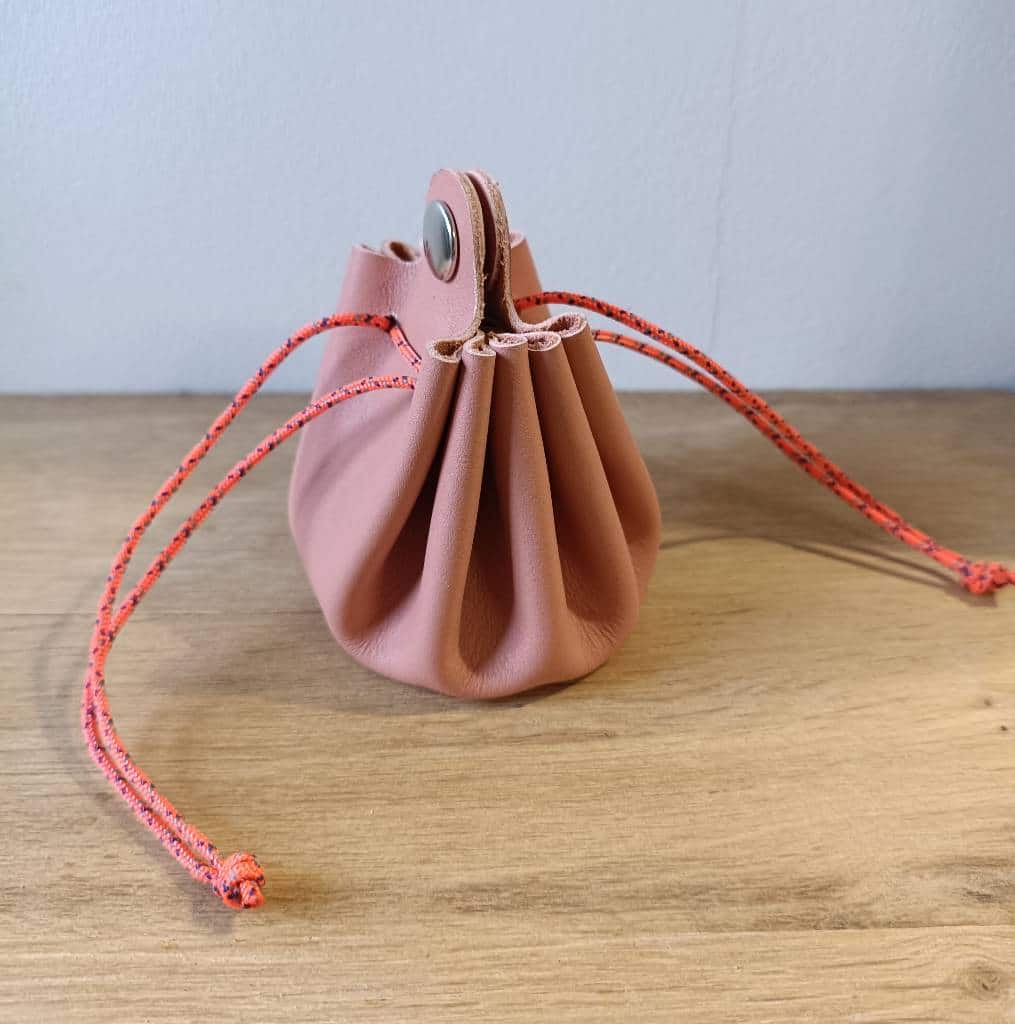 - Bourse en cuir bovin rose pâle